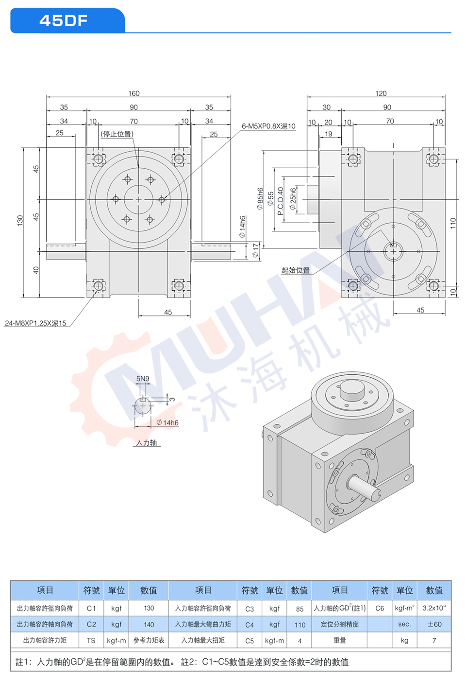 此機種具有重負荷性,可承受較大之垂直徑向或軸向壓力,為本公司專業設計工程師群,經歷多年針對盤式結構需要設計而成,其輸出軸為面盤式設計,有凸緣中心、盤面螺孔、定位、銷孔、固定面寬大、可使平面度及穩固性,更具堅固平穩。能適用于較大負荷之回轉式圓盤驅動場合,此系列機種被廣泛使用在各類盤式加工機械,及類似機種之產業機械、自動化間歇驅動部、驅動圓盤。
